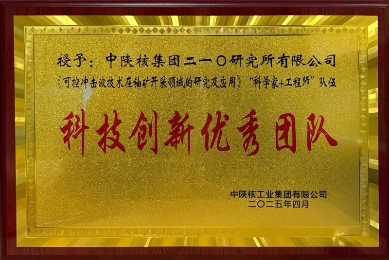 近日,中陜核集團(tuán)公布2024年度科技創(chuàng)新表彰名單,二一〇所榮獲“科技創(chuàng)新先進(jìn)單位”榮譽(yù)稱號(hào),《可控沖擊波技術(shù)在鈾礦開采領(lǐng)域的研究及應(yīng)用》“科學(xué)家+工程師”隊(duì)伍摘得“科技創(chuàng)新優(yōu)秀團(tuán)隊(duì)”獎(jiǎng)項(xiàng),技術(shù)項(xiàng)目負(fù)責(zé)人吳超被授予“科技創(chuàng)新先進(jìn)個(gè)人”稱號(hào)。