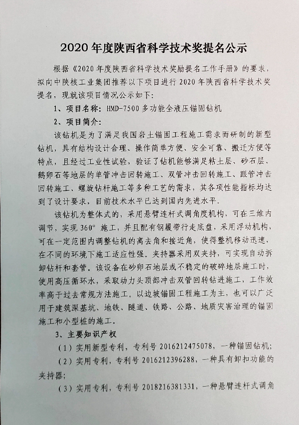 2020年度陜西省科學技術(shù)獎提名公示